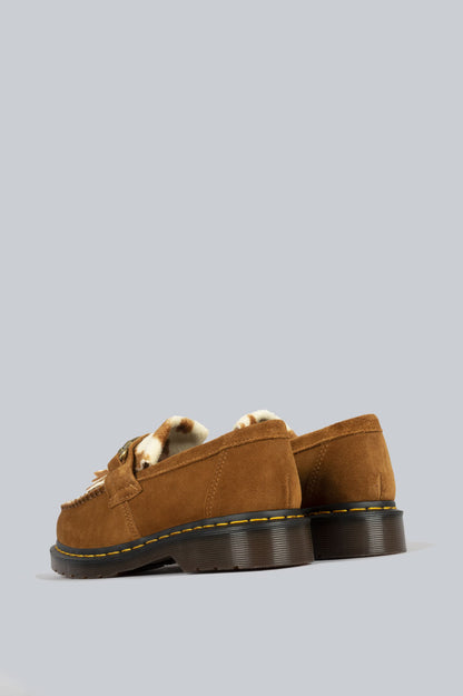DR MARTENS ADRIAN SNAFFLE HAIR-ON COW PRINT KILTIE LOAFERS PECAN BROWN