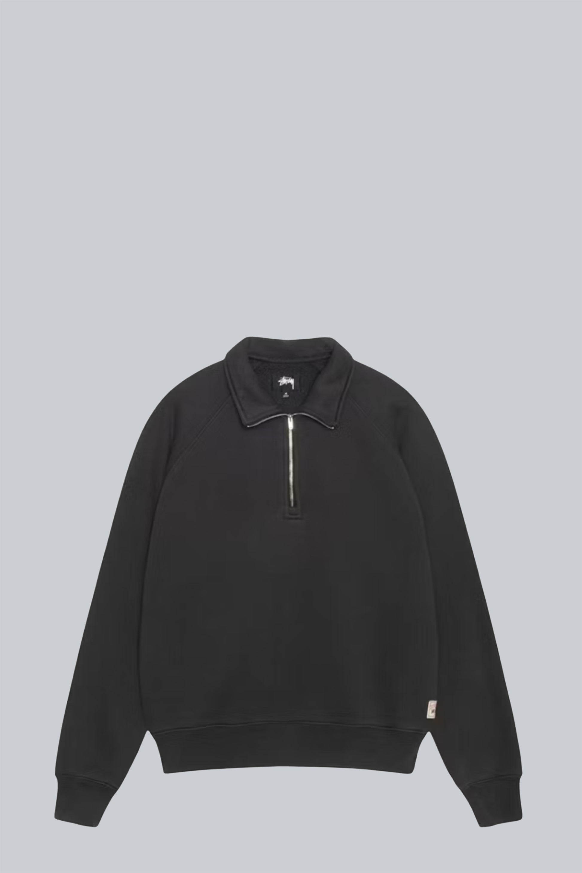 STUSSY RAGLAN RELAXED HALF ZIP SWEATSHIRT WASHED BLACK