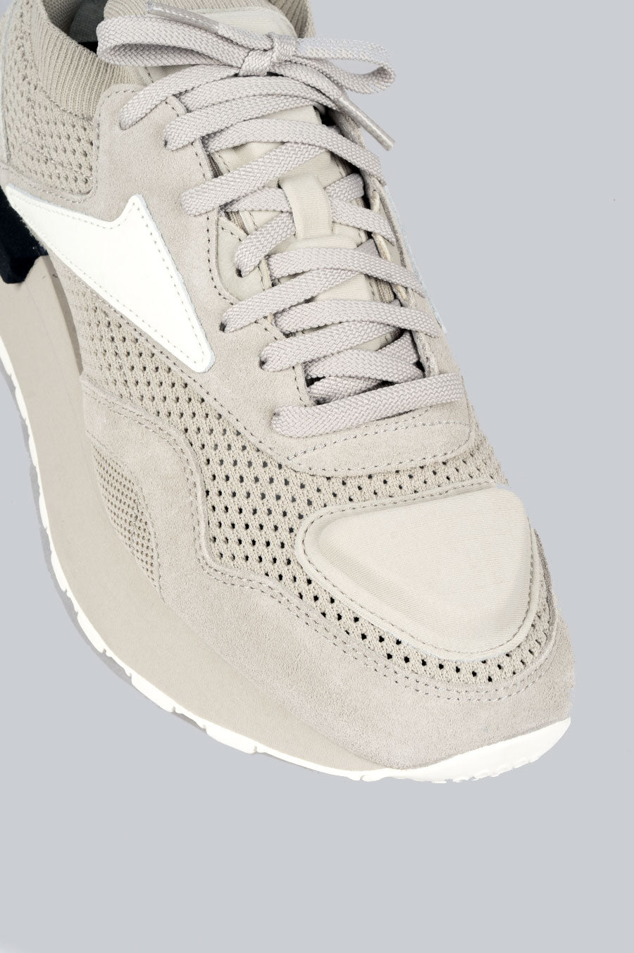 Introducing the Reebok x HYMNE Classic Nylon Plus, a sophisticated blend of style and comfort from the collaboration between Reebok and LA-based label HYMNE. This iteration features premium perforated suede uppers in a neutral mushroom shade, complemented by smooth suede overlays. The sock-line finish on the collar ensures a comfortable fit, while the detailed toe box adds a 3-dimensional effect. An exaggerated platform with a foamy midsole provides enhanced support, and HYMNE branding on the tongue completes the design.